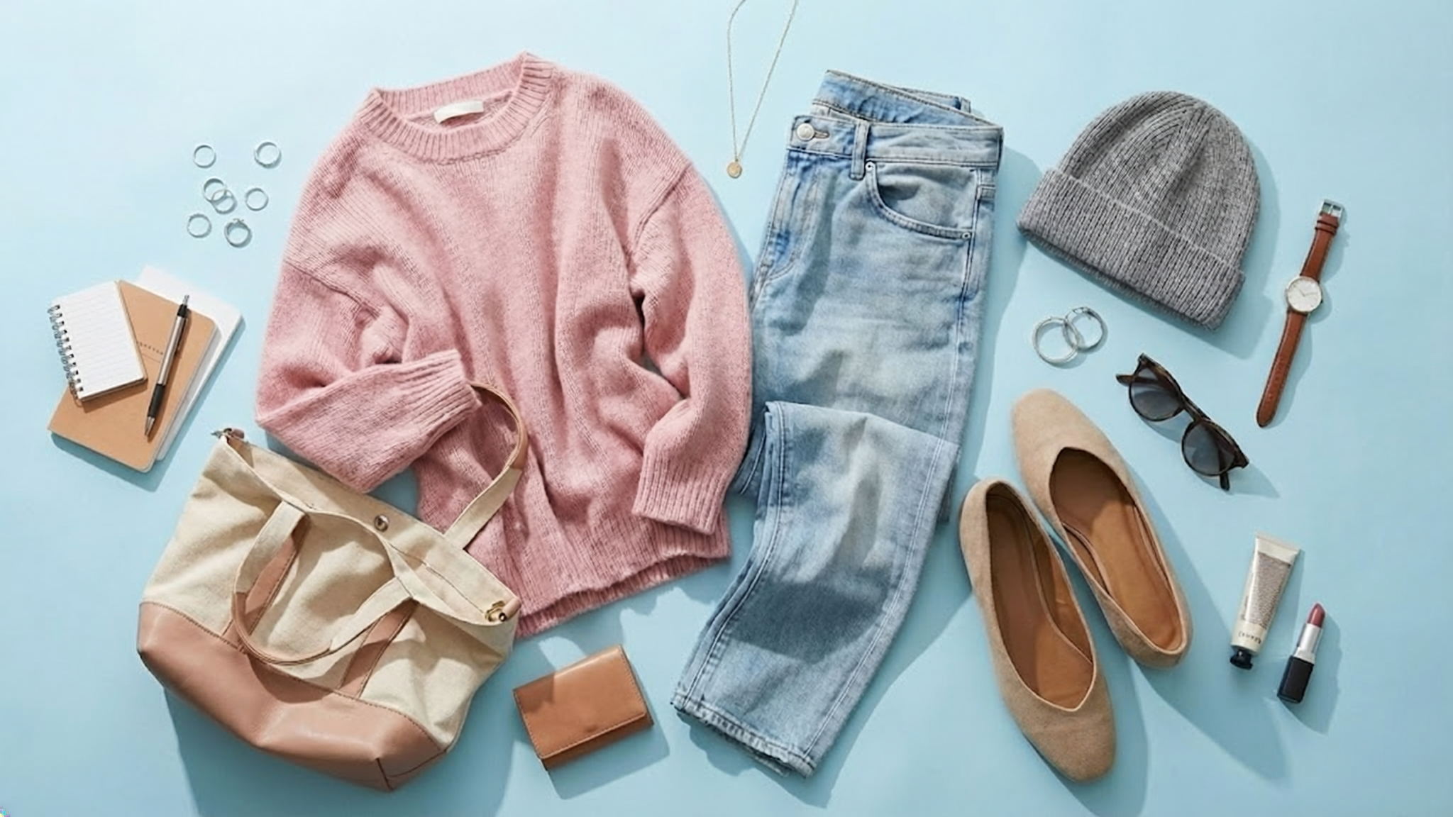 上品な淡いピンク色は、白やベージュのトップスと合わせることで清潔感のある大人の着こなしが完成します。