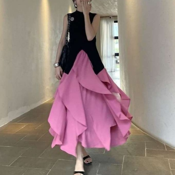 個性を引き立てる非対称デザインのビビッドピンクスカート