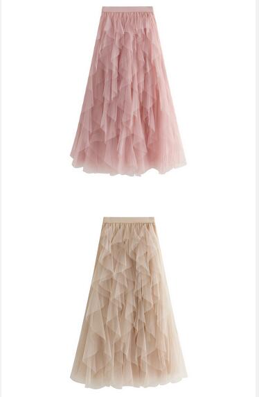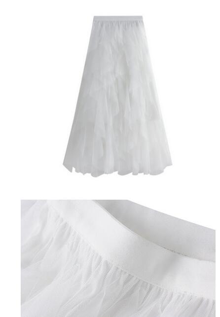 ふんわりとした多層チュールが美しく揺れる、夏にぴったりのロングスカートです。