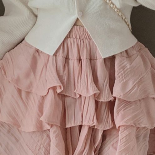 ふわりと広がるティアードデザインが可愛らしいフリルスカート。 ハイウエストで脚長効果抜群、着痩せも叶える優秀アイテム。 ピンクコーデの主役として、甘くフェミニンなスタイリングを完成させます。