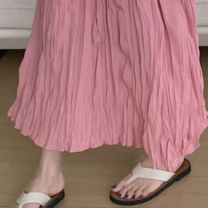 軽やかなシフォン素材のプリーツロングスカート。