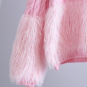 立体的なケーブル編みと袖口のふわふわファーが目を引くニットセーターです。