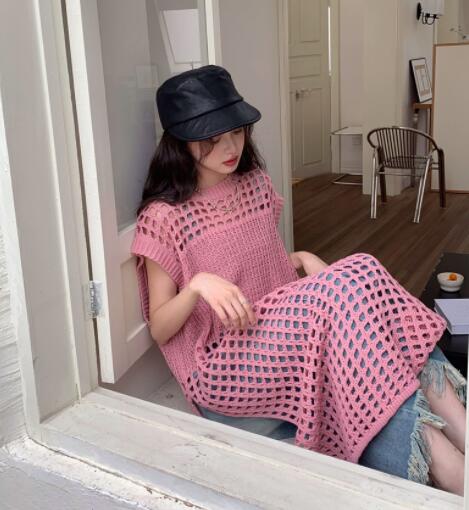 毛糸の優しい質感と透け感が女性らしさを引き立て、