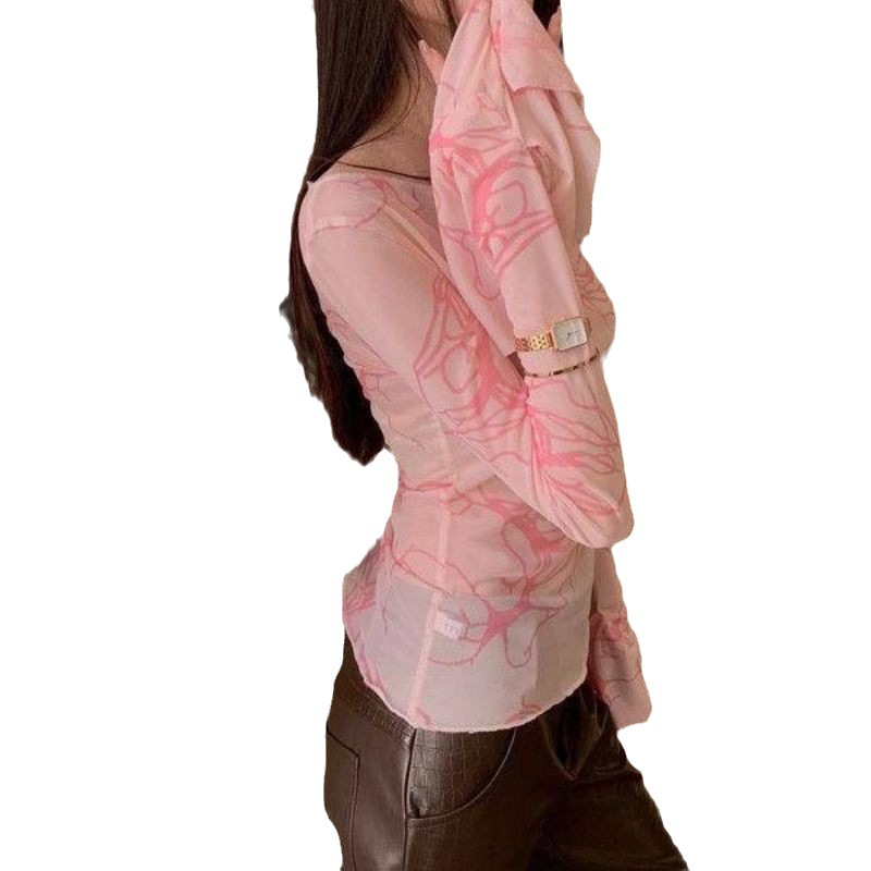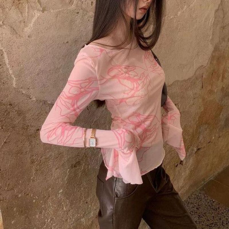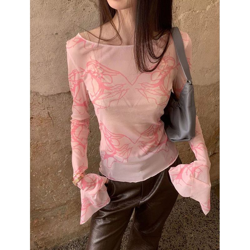 透け感が美しいシースルー素材の長袖トップスです。 天使モチーフのピンク柄がロマンティックで、ピンクコーデの主役アイテムとして活躍します。 細身のシルエットでスタイルアップ効果も抜群。カジュアルから上品なスタイリングまで幅広く対応できる万能アイテムです。