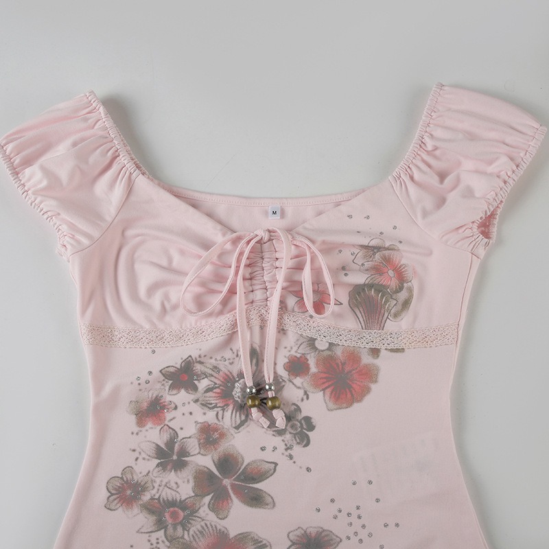 この商品は国内倉庫から発送され、淡いピンク色に美しい花柄プリントが映える魅力的なデザインと高品質な素材で作られています。 パフスリーブとタイトフィットが女性らしさを演出し、ピンクコーデの主役アイテムとして日常使いや特別なシーンにもぴったりです。