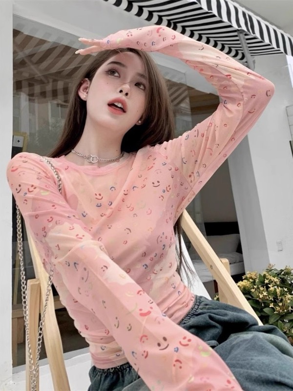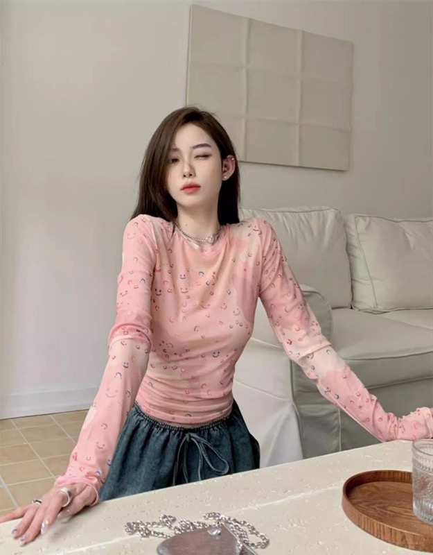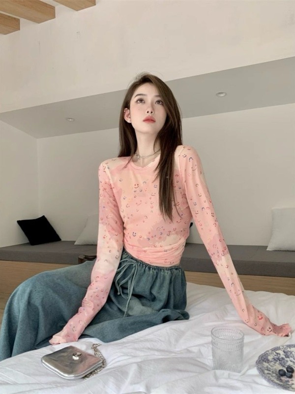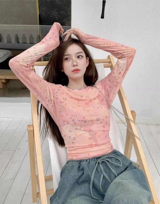 ピンクコーデの主役になる可愛いスマイル柄プリントの長袖カットソーです。 細身のスリムフィットでスタイルアップ効果も抜群。 ピンクの優しい色合いと愛らしいプリントが女性らしさを演出します。 ご注文確定後、迅速な配送でお届けいたします。