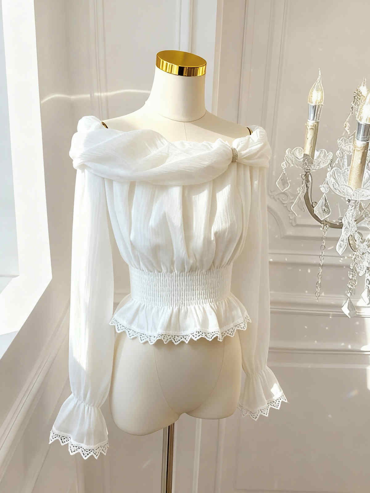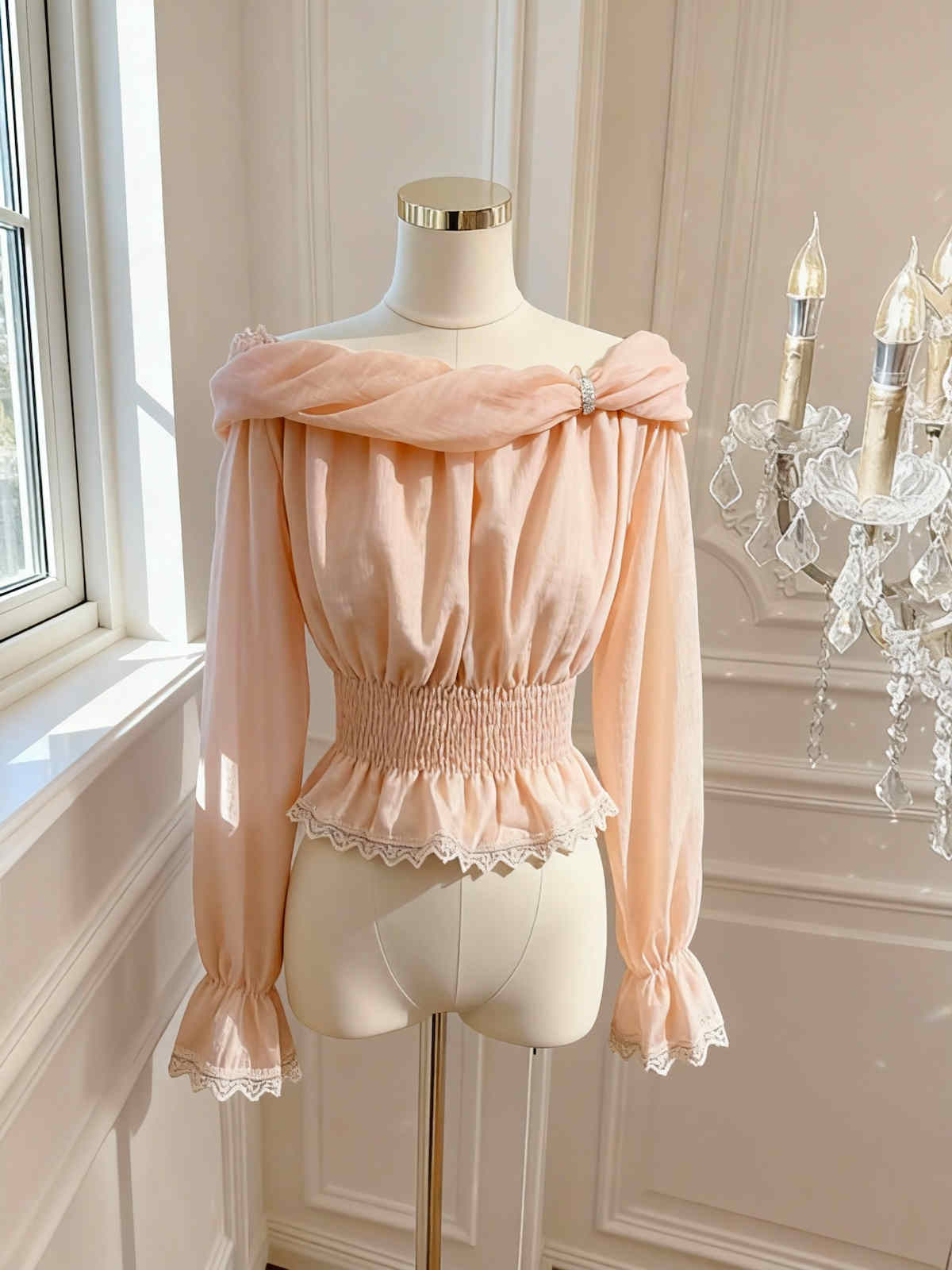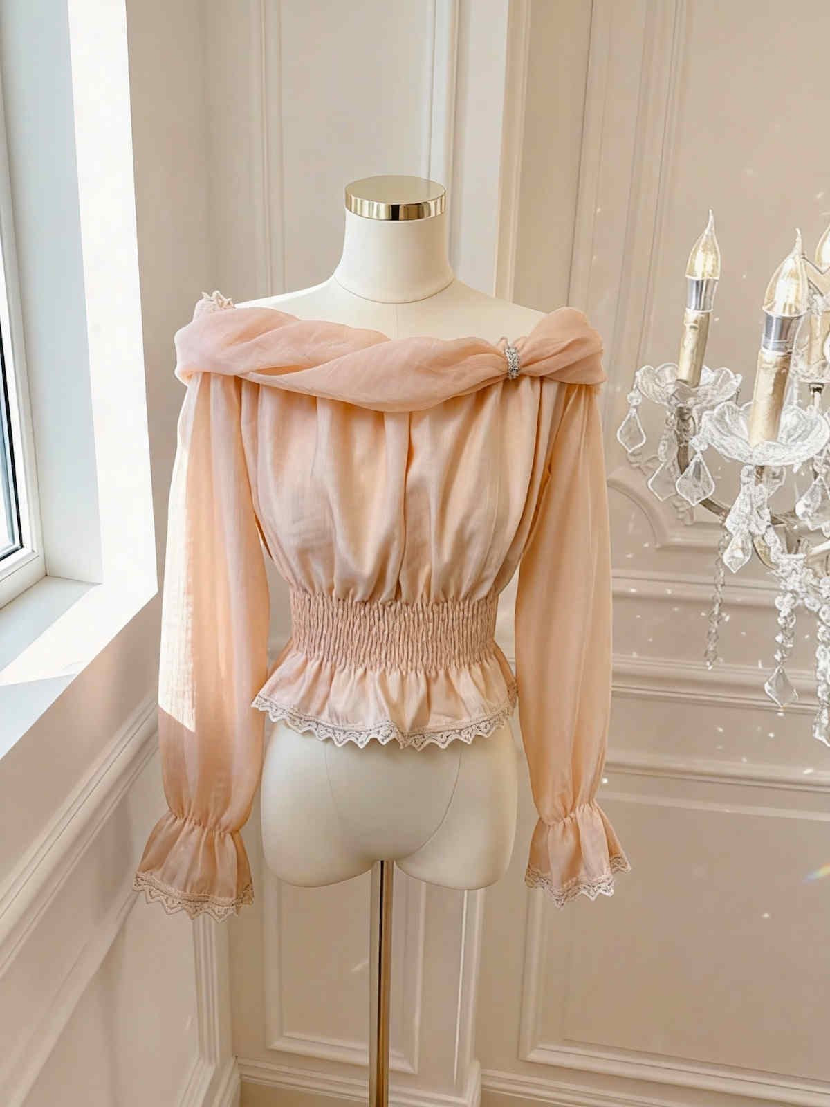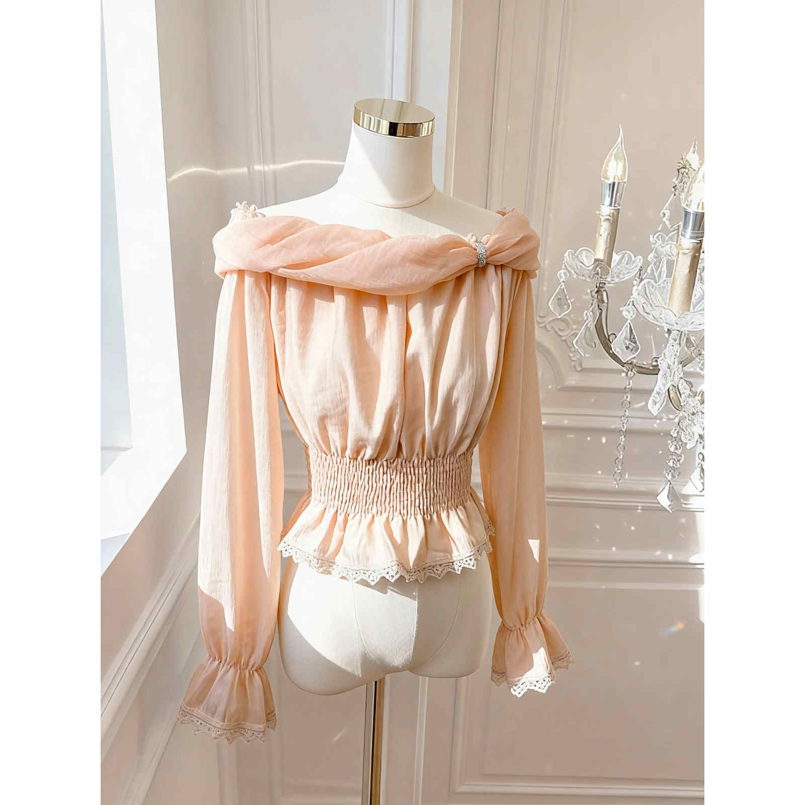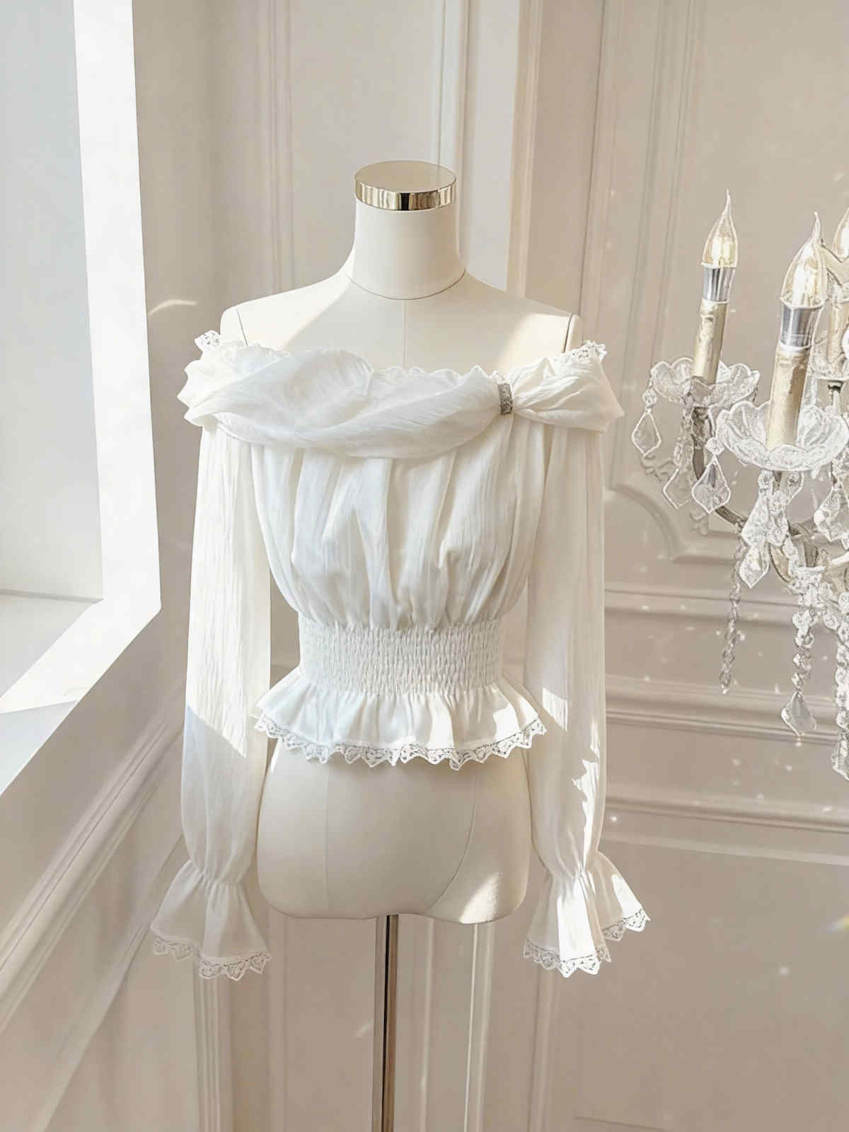 今季注目の気質あふれるフェミニンブラウスが登場。 上品なレースとフリルディテールが織りなす繊細な美しさで、ピンクコーデにも合わせやすい万能アイテム。 ベルスリーブが優雅な印象を演出し、特別な日のスタイリングにも最適です。