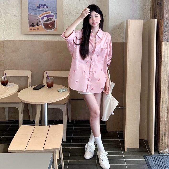 可愛い小花柄が散りばめられたゆったりシャツです。