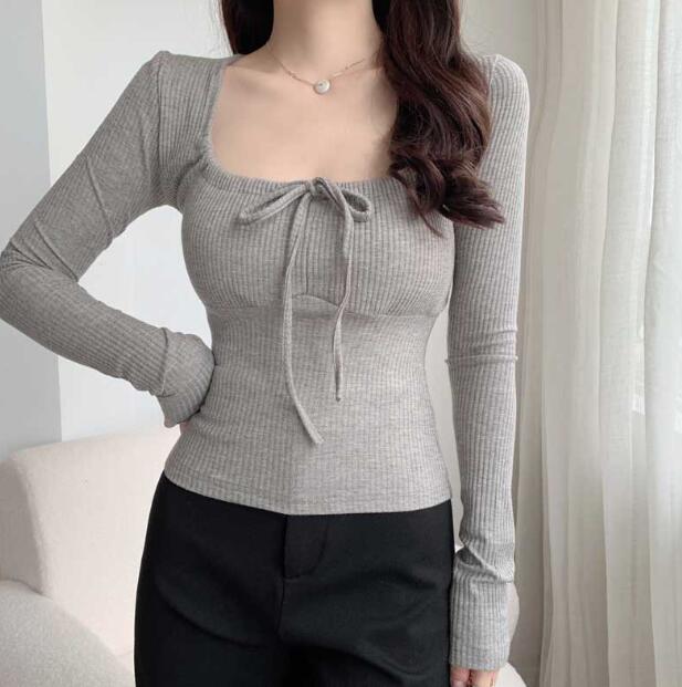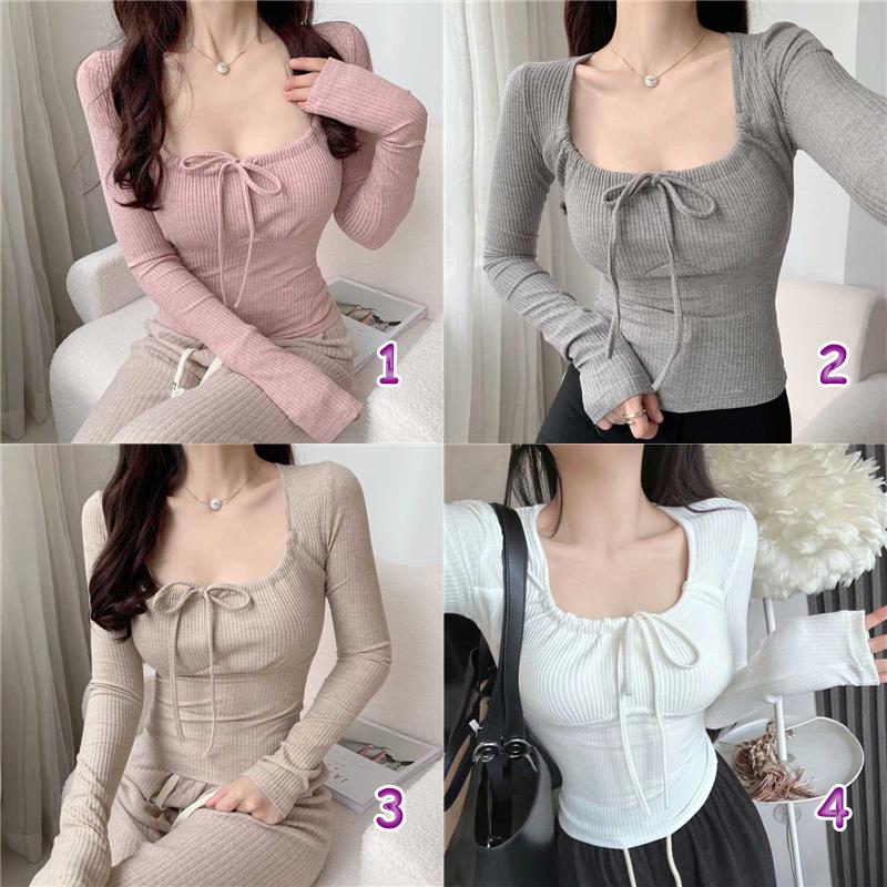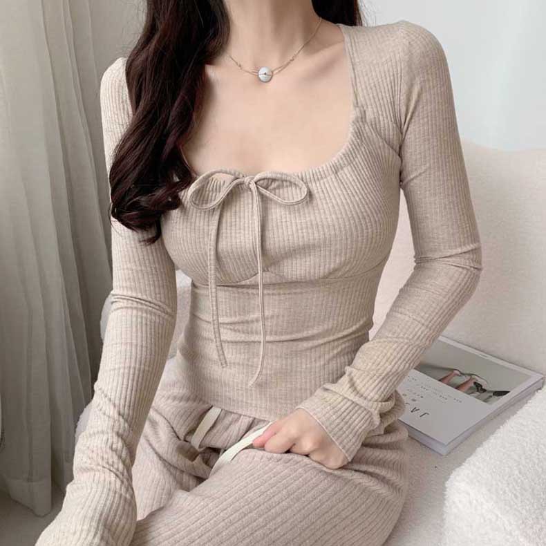 柔らかなリブニット素材の長袖トップスです。 フロントのリボンがアクセントになった個性的なデザイン。 ピンクコーデにぴったりな優しい色合いで、 フェミニンで上品な印象を演出します。