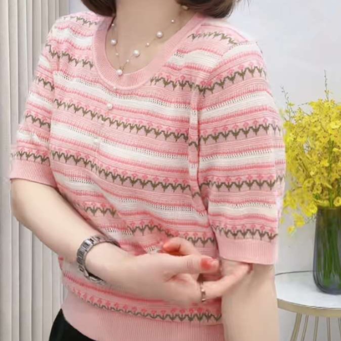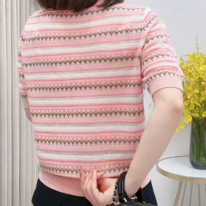 繊細な透かし編みと柄の組み合わせが、春夏に最適な軽やかさと上質感を演出してくれます。