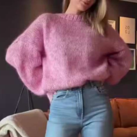 ふんわりとしたシルエットが魅力のピンクニットセーター。柔らかな質感に包まれ、快適な着心地が楽しめます。大きめの袖と肩のラインがリラックス感を引き立て、ピンクコーデに最適な一着。デニムとの組み合わせで、カジュアルかつおしゃれなスタイルが完成します。普段使いからお出かけまで幅広く活躍するアイテムです。あなたのワードローブに欠かせないピンクのトップスを手に入れて。