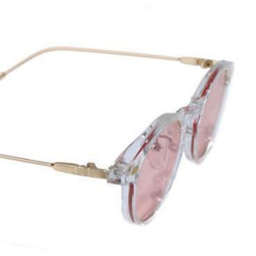 ピンクコーデに最適な柔らかな曲線レンズで、顔になじみやすいデザインです。