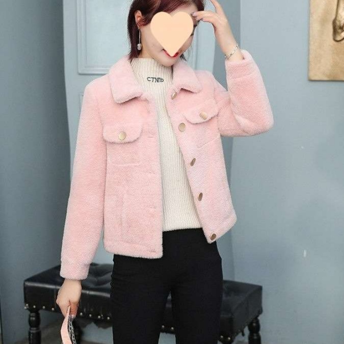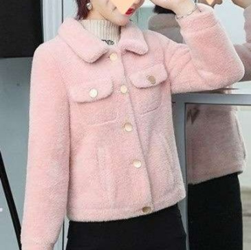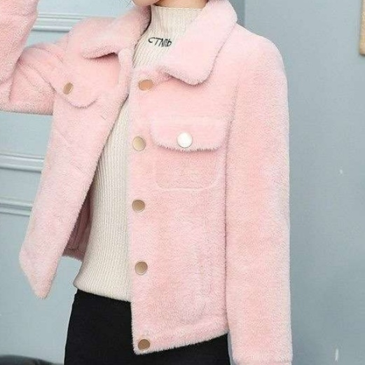 ピンクコーデの完成度を高める上品なジャケットデザイン。