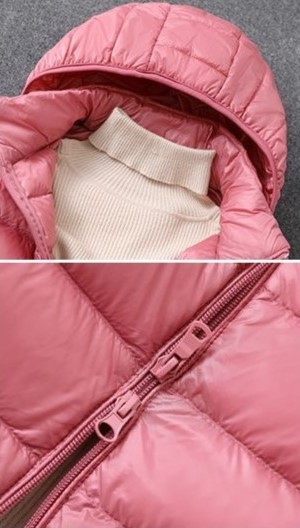 細身シルエットが女性らしさを引き立て、取り外し可能なフードで防寒性も兼ね備えています。