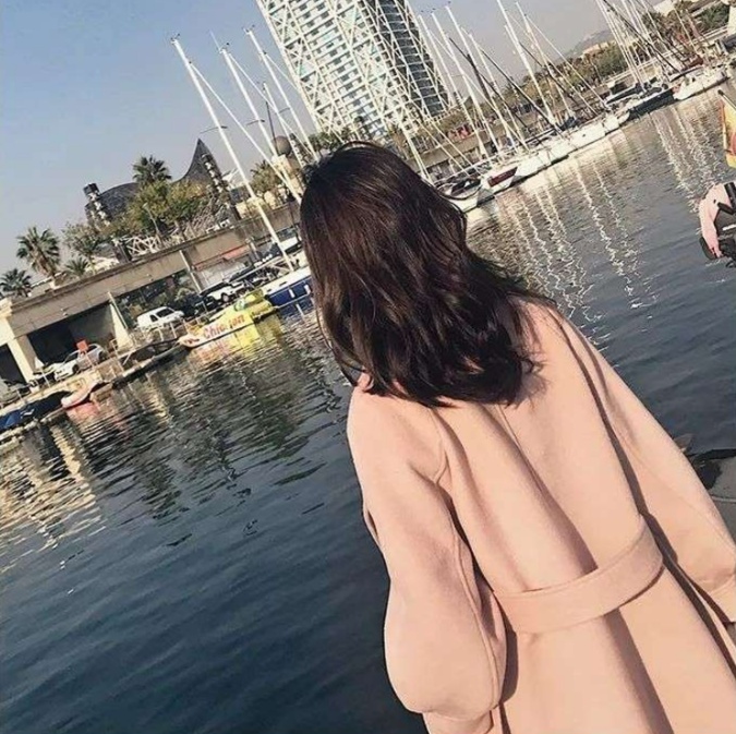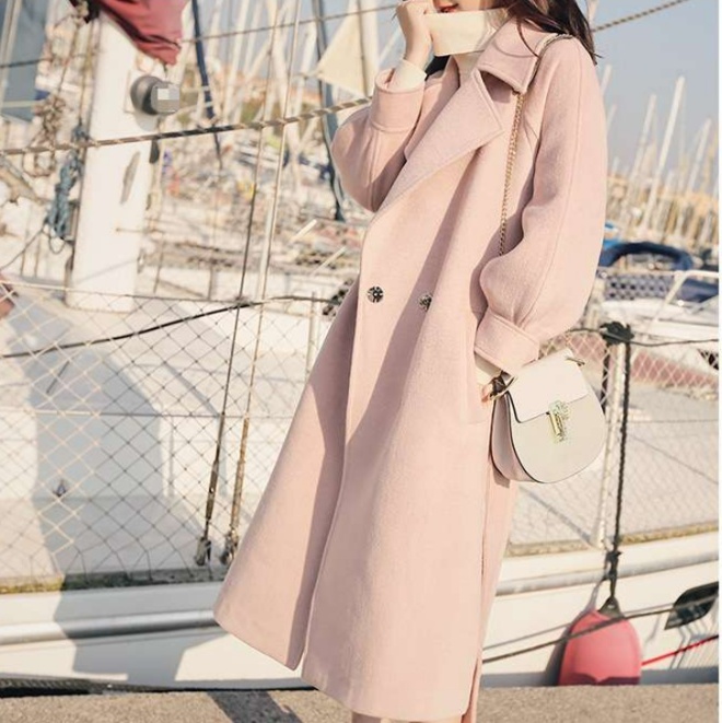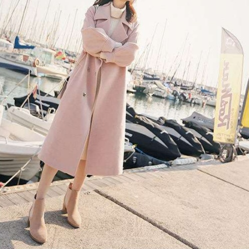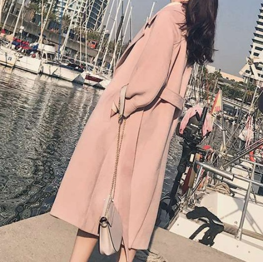 港町の散策にもぴったりな、女性らしい印象の長めコート。
