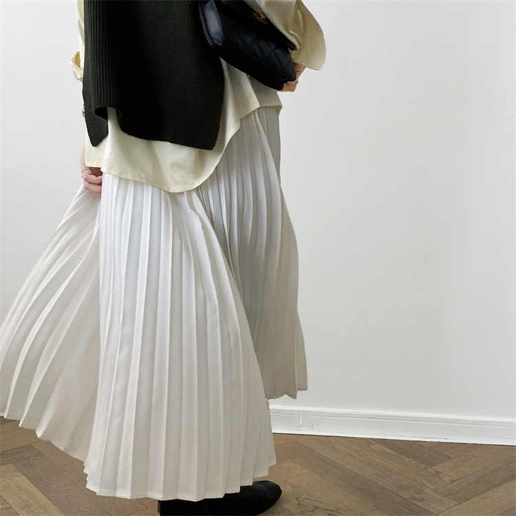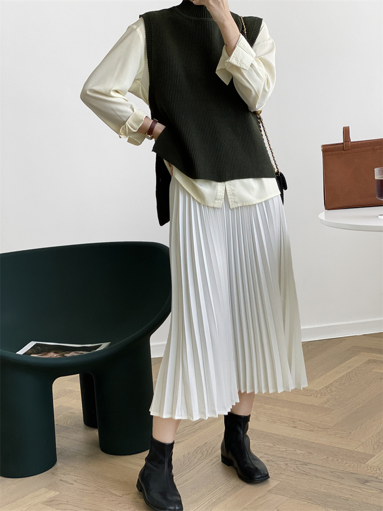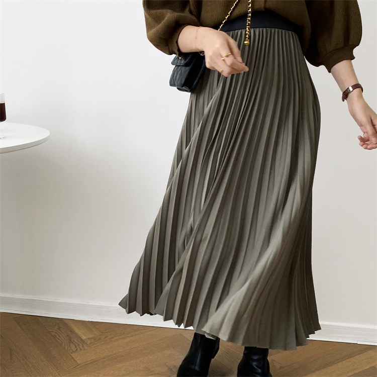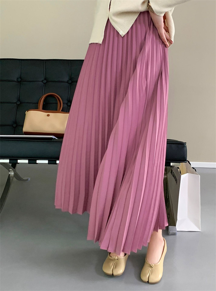 ハイウエスト仕様で脚長効果も抜群、上品なピンクコーデにぴったり。