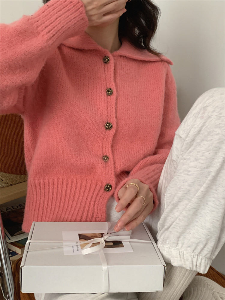 柔らかなピンク色が魅力的なショート丈ニットカーディガンです。 フロントボタンデザインで着回し力抜群、ピンクコーデの主役アイテム。 【素材】アクリル 【カラー】ピンク、ベージュ