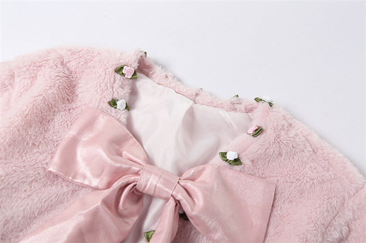 リボンとパール風ボタンがキュートなデザインで、ピンクコーデを楽しめる上品なアイテム