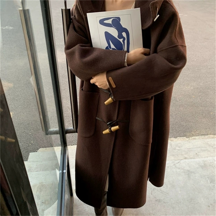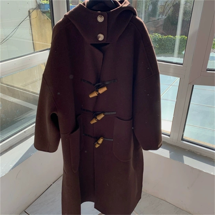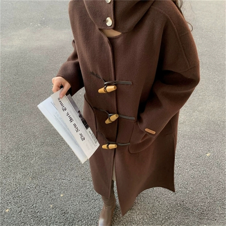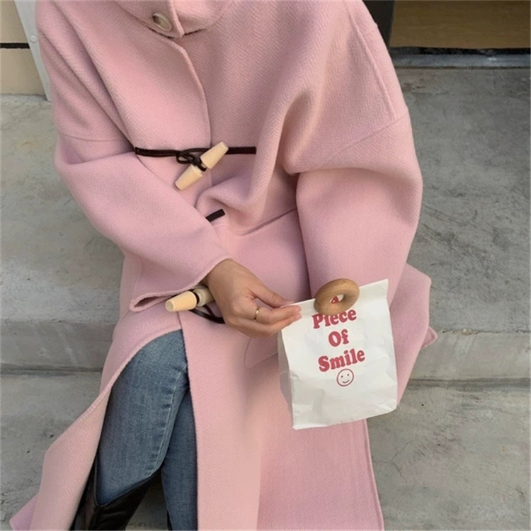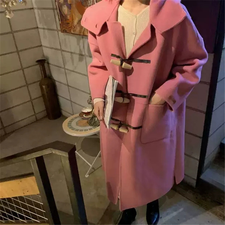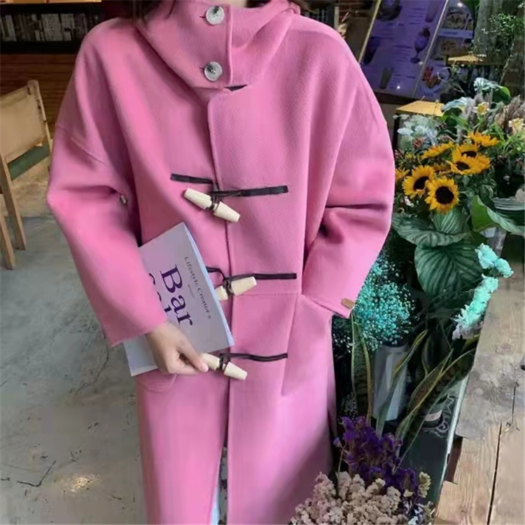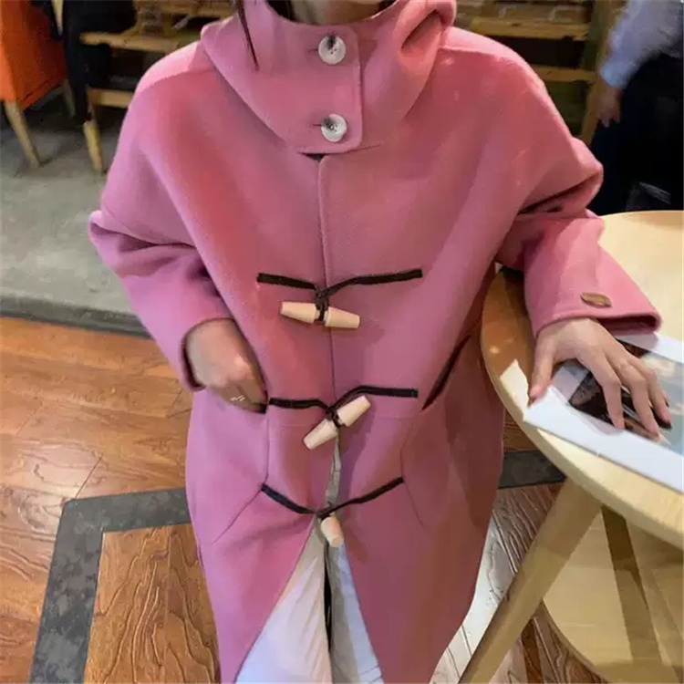 木製のトグルボタンがアクセントになった暖かいアウターで、ピンクコーデに最適なアイテムです。