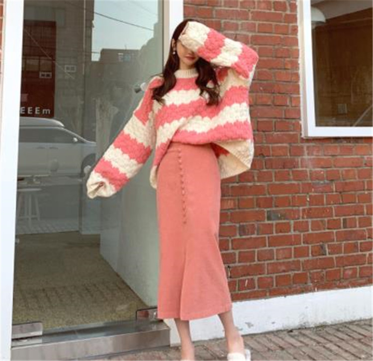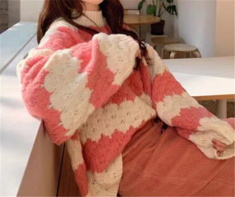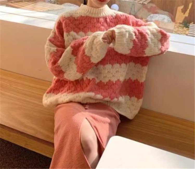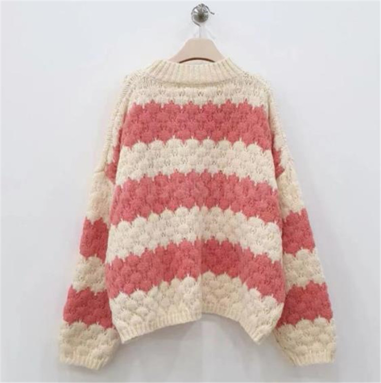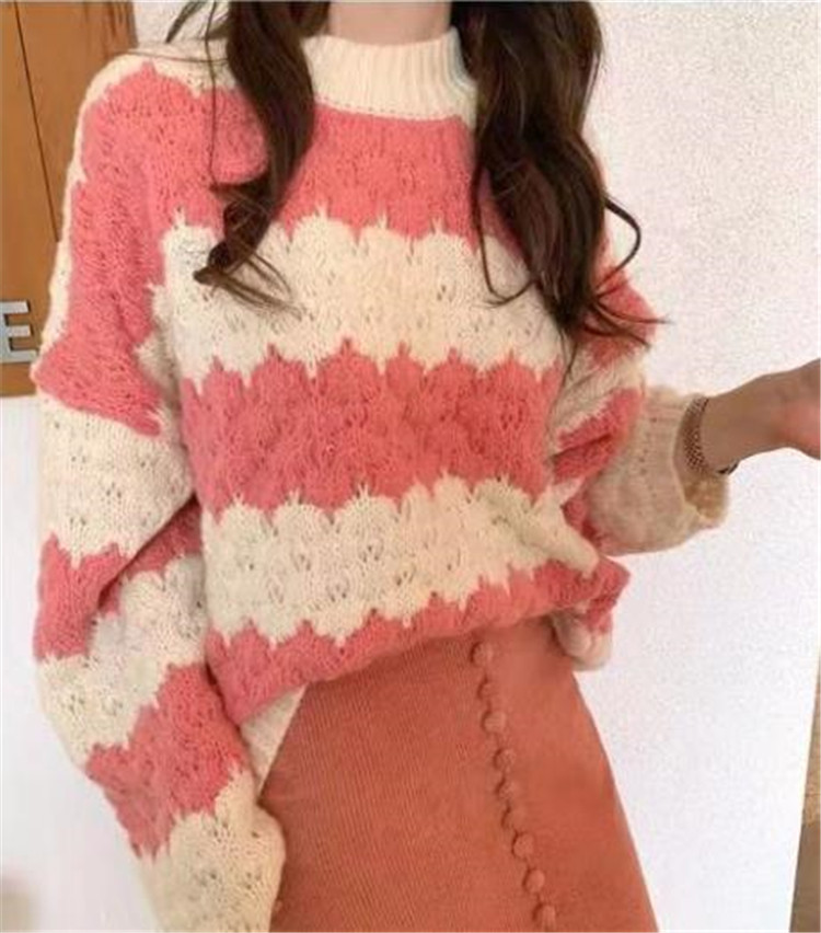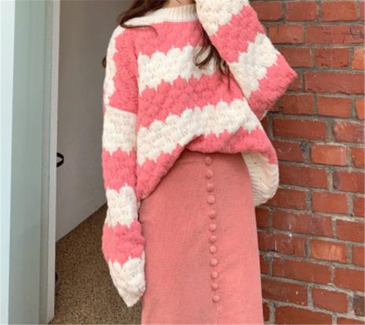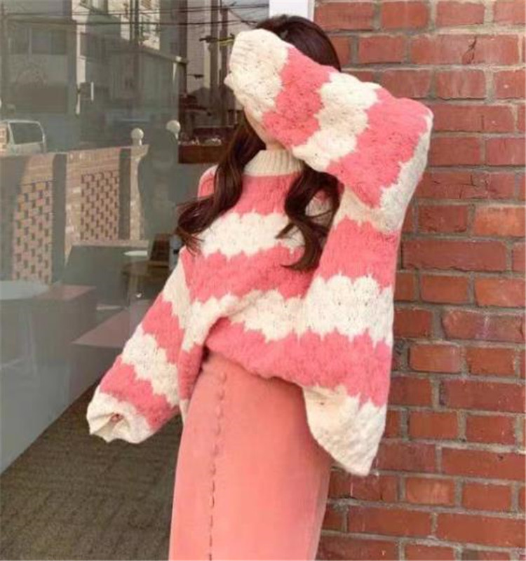 可愛いピンクと白のボーダー柄が魅力的なゆったりシルエットのニットセーターです。 甘い雰囲気でピンクコーデにぴったりのアイテム。 素材はアクリルで着心地も抜群です。 カラー:ピンク×ホワイト