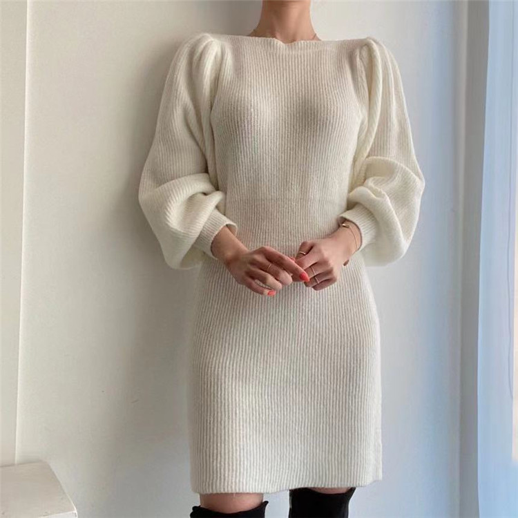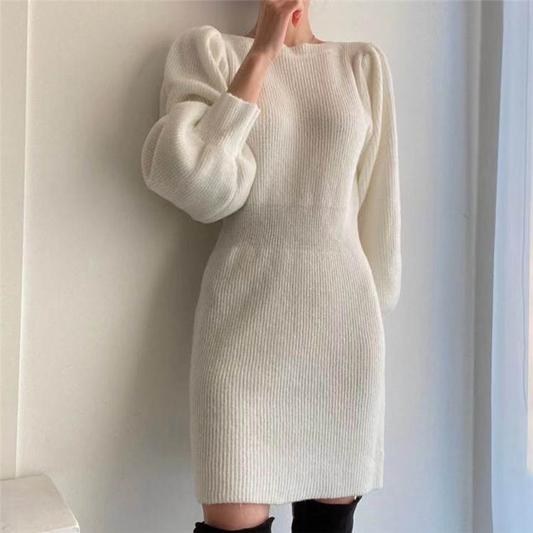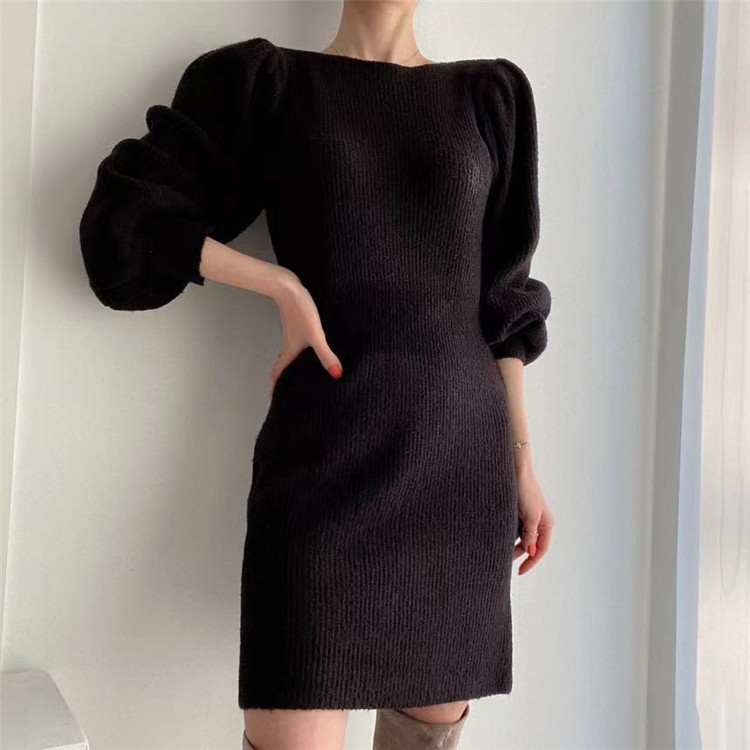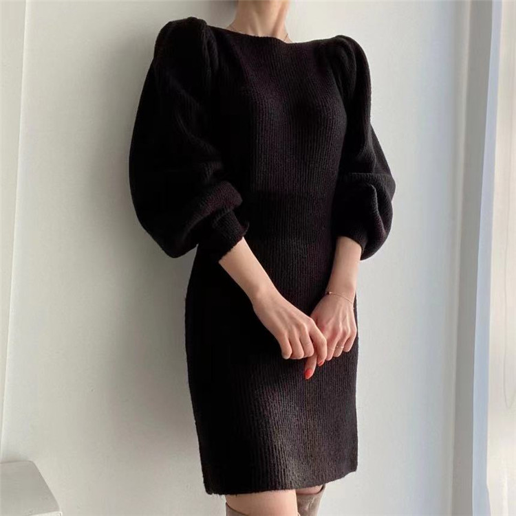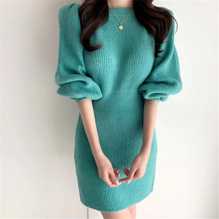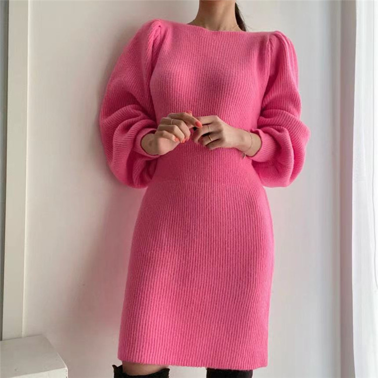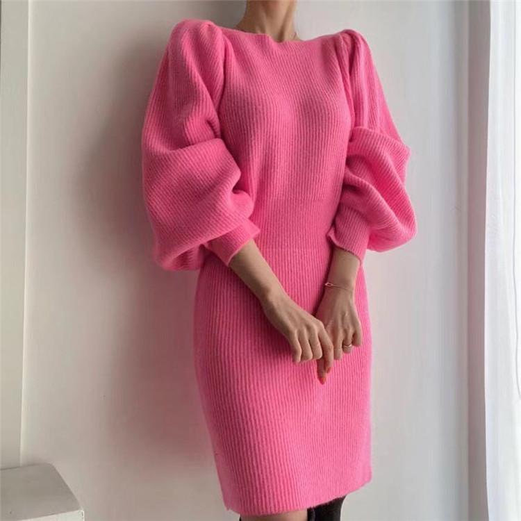 ボリューム袖が可愛いリブニットワンピースで、ピンクコーデの主役アイテム 上品なシルエットでカジュアルから大人っぽいスタイルまで幅広く対応 【素材】アクリル カラー:ピンク、ブラック、ベージュ、カーキ、グリーン